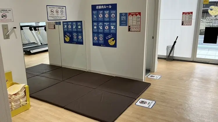 入会前の見学はできません。店舗にスタッフが不在な上に、ジムの鍵になるQRコードは入会しないと発行されないため、事前に見学はできません。店舗の詳細ページに設置されているマシンと台数が記載されています。