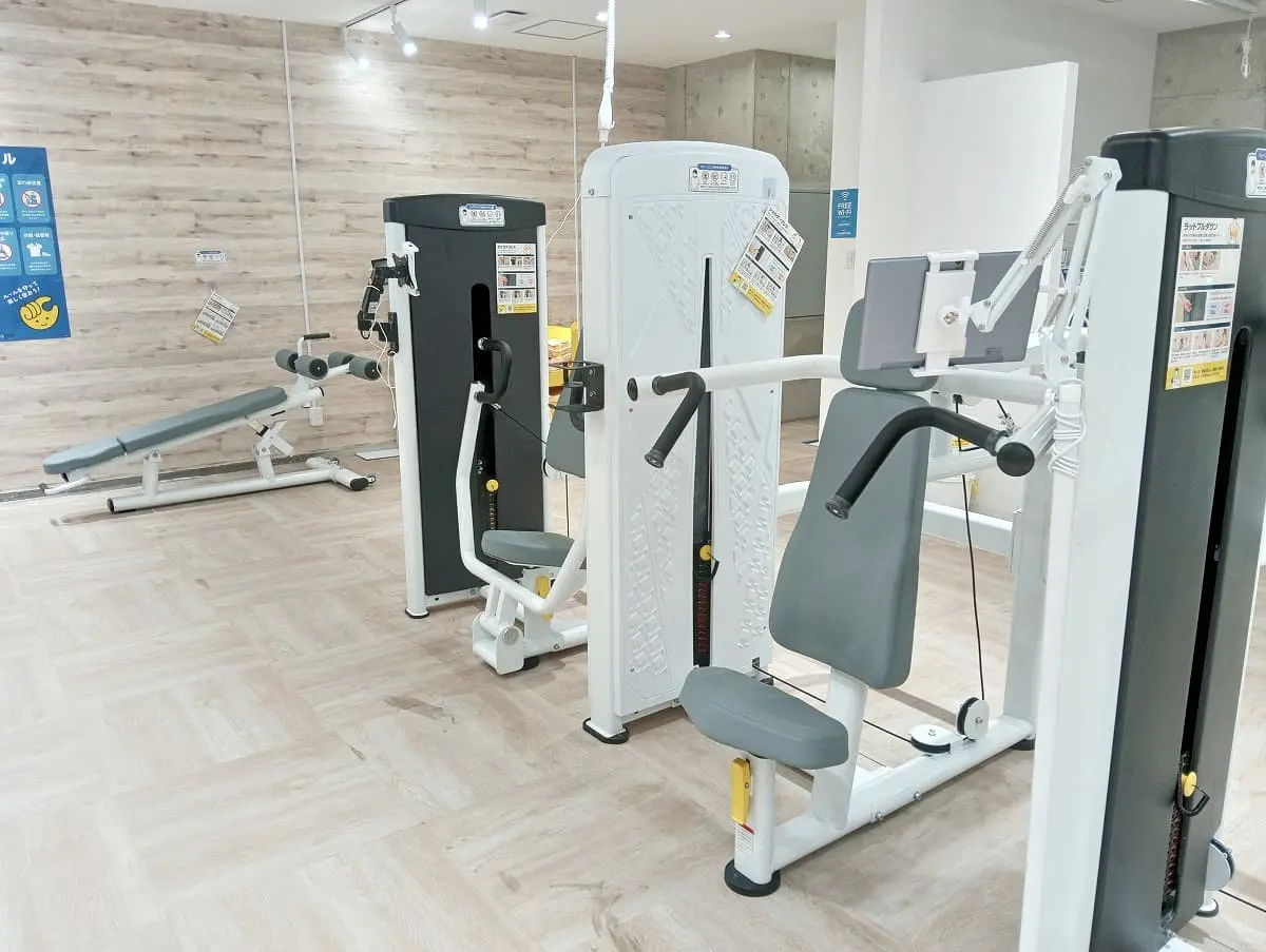 入会前の見学はできません。店舗にスタッフが不在な上に、ジムの鍵になるQRコードは入会しないと発行されないため、事前に見学はできません。店舗の詳細ページに設置されているマシンと台数が記載されています。