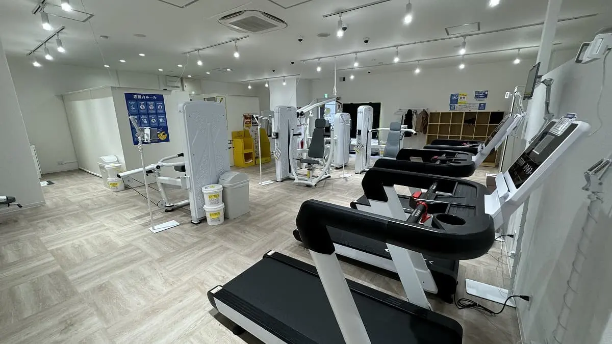 入会前の見学はできません。店舗にスタッフが不在な上に、ジムの鍵になるQRコードは入会しないと発行されないため、事前に見学はできません。店舗の詳細ページに設置されているマシンと台数が記載されています。